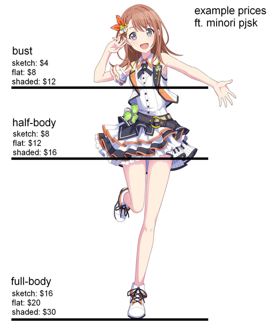payment needed to be sent after i send a sketch of the commission, just to make sure it's what the customer wanted. i'd prefer if the commissioner would add up the total cost first so that i can double check it, but it's not entirely necessary